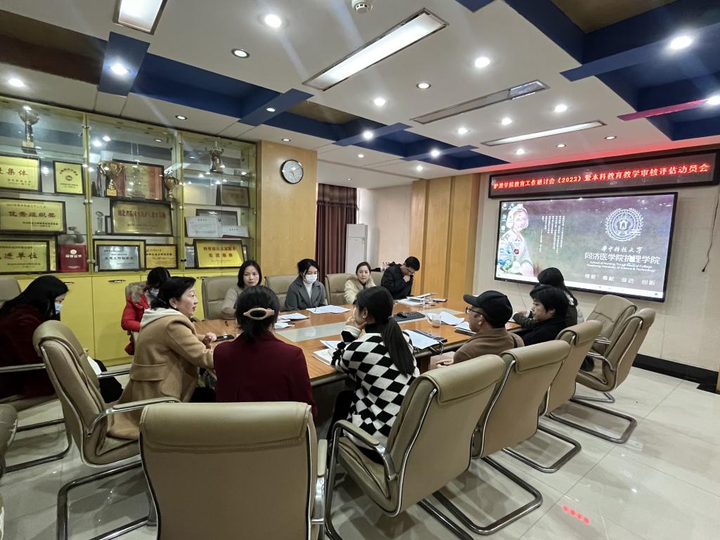 11月27日,太阳集团网站8722在9楼会议室举行教育工作研讨会(2023)暨本科教育教学审核评估动员会,院长毛靖作动员讲话,院党委书记徐晖主持会议,附属协和医院护理部主任刘义兰、副主任耿力,附属同济医院护理部副主任曾铁英,太阳集团网站8722全体教师参加会议。