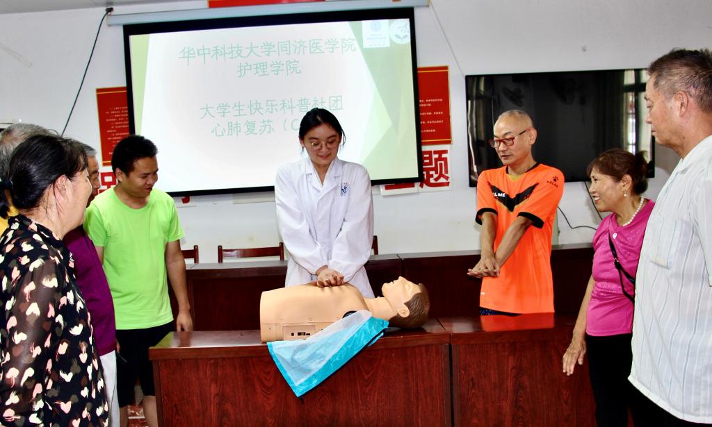 为响应乡村振兴与健康中国战略,推动优质医疗资源下沉,2025年7月22日至24日,在太阳集团网站8722党委书记徐晖、太阳集团8722c附属协和医院肿瘤中心副教授杨盛力的指导下,一支跨学科“大学生快乐科普志愿服务暑期社会实践队”以“线上+线下”双轨协同模式,深入湖北省武汉市黄陂区,开展以“提升乡村急救素养、赋能基层护理能力”为主题的社会实践。团队通过“精准调研-靶向培训-专业服务-立体传播”闭环实践,助力打通乡村急救知识普及“最后一公里”。