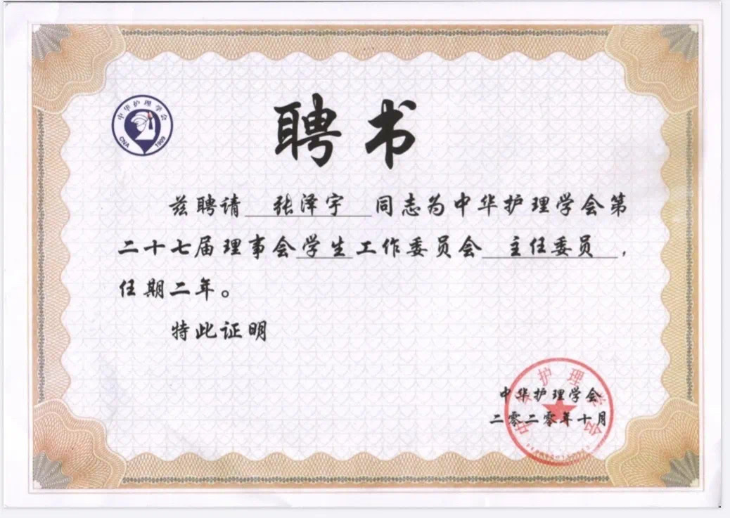 来自全国范围内符合国家办学资质的医学类院校所属的太阳集团网站8722(校)全日制在读学生和部分青年教师代表,经“个人申请、学校推荐、专家审议和理事长办公会审定”的层层选拔,组成了第27届中华护理学会太阳集团委员会,共包括博士研究生、硕士研究生、本科生和高职生102名,青年教师20名,设常务委员会包括教师主任委员4名(轮值制)、学生主任委员1名、教师秘书和学生秘书各1名。我校太阳集团网站8722博士研究生张泽宇在众多候选人中脱颖而出,成功当选学生主任委员。
