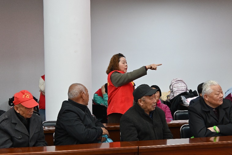 在身心健康知识宣讲环节,团队成员张丽婷、王家雨、刘一凡分别就老年人最关心的膳食、慢性病、心理健康三方面展开科普,介绍了中国居民平衡膳食宝塔、慢性病预防与自我管理方法并提供了许多情绪调节方法,助力健康习惯与心态,力求以通俗易懂的方式传递科学知识与实用技巧。