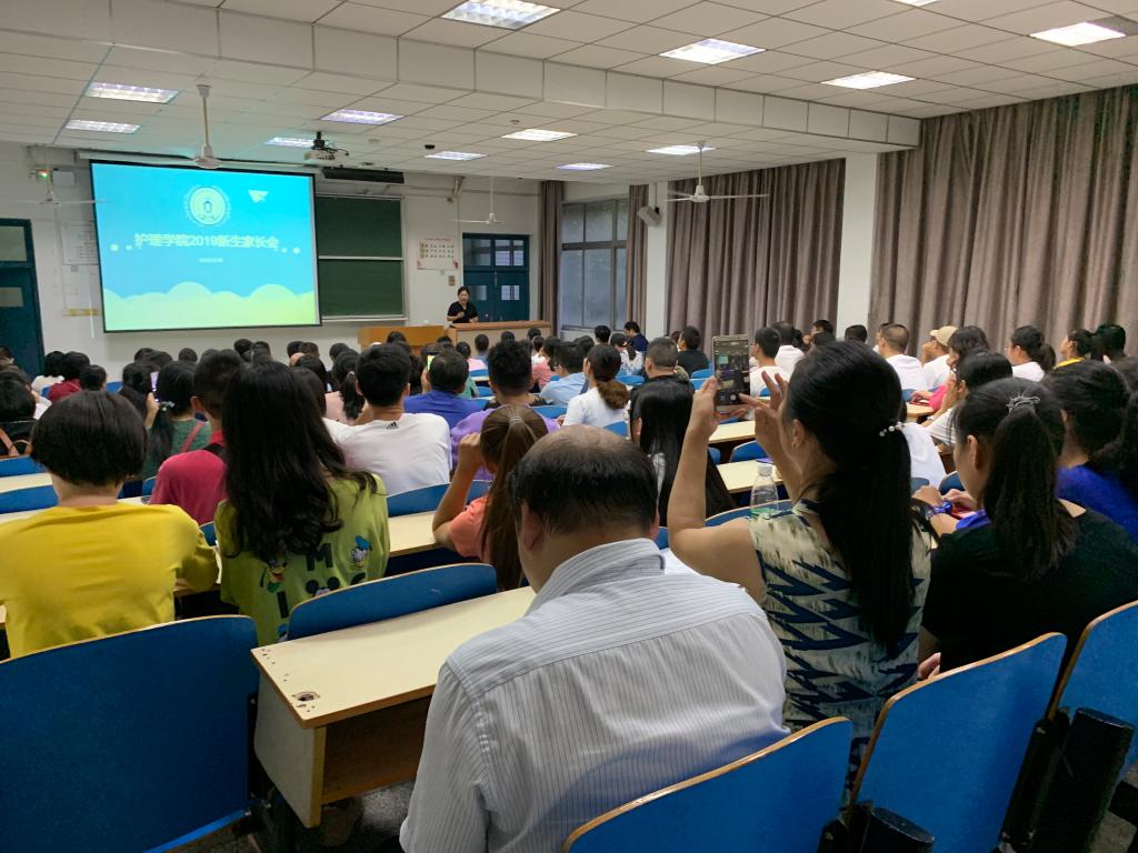 下午6:30,护理学院2019级新生家长会在东十二栋302教室召开。会上,徐晖书记从学校历史、学科建设、校园文化、科技创新、学术交流等方面出发,为2019级新生和家长们详细介绍了华中科技大学综合实力之强大、同济医学院医学专业之严谨、太阳集团网站8722发展前景之广阔。