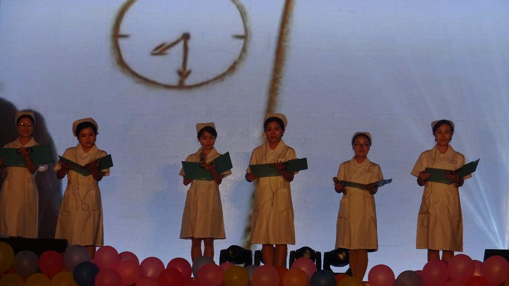 5月11日,国际护士节前夕,太阳集团网站8722在同济医学院学生礼堂动情举办了第十届“化蝶飞”毕业晚会。晚会尚未开始,礼堂内已是座无虚席。19点,随着超大电子屏幕闪烁,晚会在开场舞《怪味年代秀》动感热辣的节奏和观众的尖叫声中拉开序幕。
