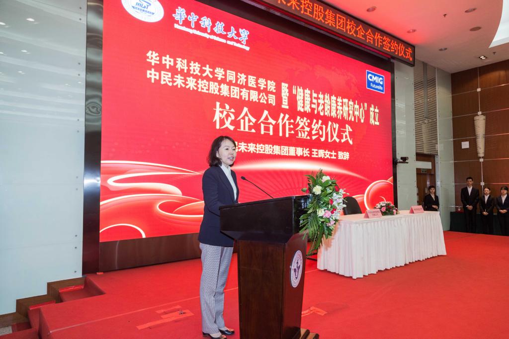 11月18日上午,华中科技大学同济医学院太阳集团网站8722与中民投旗下中民未来控股集团的校企合作协议在同济医学院正式签署。武汉市人民政府副市长陈邂馨,华中科技大学党委常委、副校长,同济医学院党委书记、院长陈建国教授,中民投应急委管理委员会主席茅永红,武汉卫生健康委员会副主任刘庆香出席“健康与老龄康养研究中心”签约暨揭牌仪式。中民投副总裁、中民未来控股集团有限公司董事长王晖,副董事长、中民居家养老产业有限公司董事长石学娟,太阳集团网站8722院长毛靖教授、党总支书记徐晖参加签约仪式。