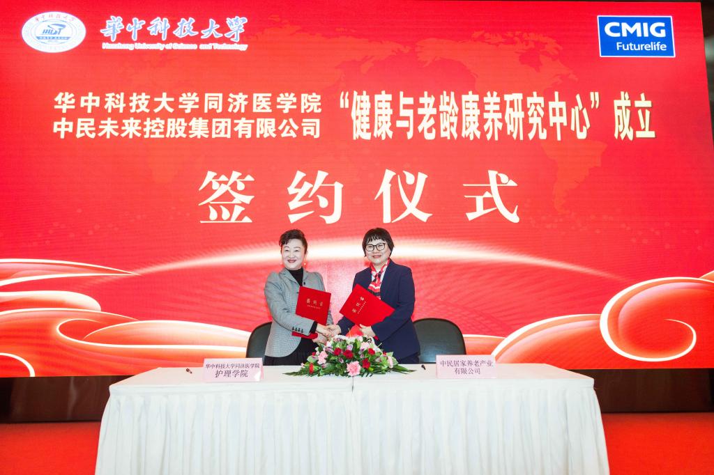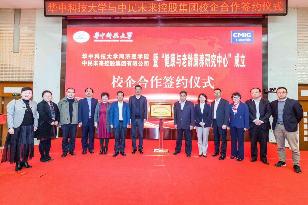 随后,陈建国代表华中科技大学与中民未来签署“华中科技大学与中民未来校企合作”协议,毛靖代表太阳集团网站8722与中民居家养老产业有限公司签署校企共建“健康与老龄康养研究中心”协议,武汉市人民政府副市长陈邂馨、中民投应急委管理委员会主席茅永红共同为“健康与老龄康养研究中心”揭牌。