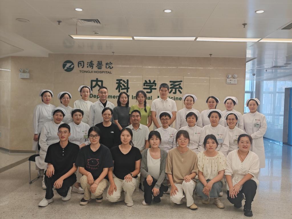 会后,傣医药学院师生先后前往内分泌科、中医科、甲乳外科进行特色护理参观,各科护士长刘清华、陈程、夏莹等陪同参观,中医科护士长陈程为来访师生送上同济中医科特色中药香囊。双方结合病房实例就动态血糖检测技术、糖尿病人护理、特色中医治疗手段、乳腺癌个案管理、淋巴水肿包扎治疗等要点展开研讨交流。