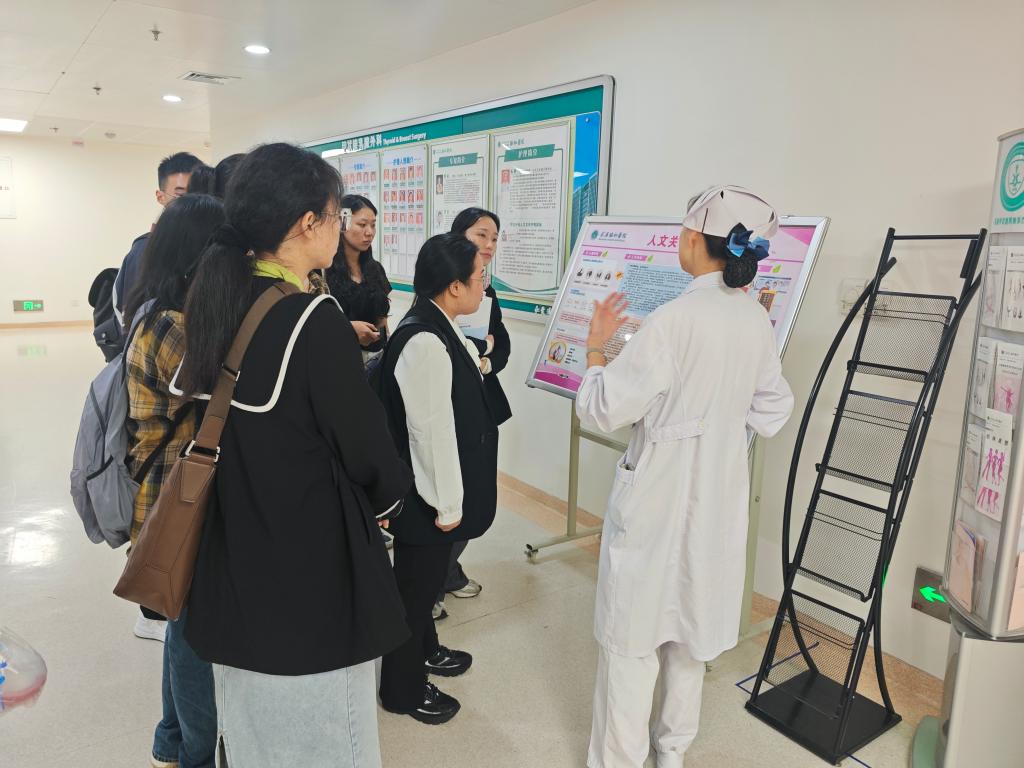会后,傣医药学院师生参观了协和医院甲状腺乳腺科室,牵头护士长陈婷介绍了科室的发展历程及人文关怀在护理工作中的重要性,双方就“如何将人文关怀融入日常护理实践中”展开讨论。为了更直观地了解床旁护理中的人文关怀实践,傣医药学院师生还观摩了护士面向患者进行的健康宣教活动。