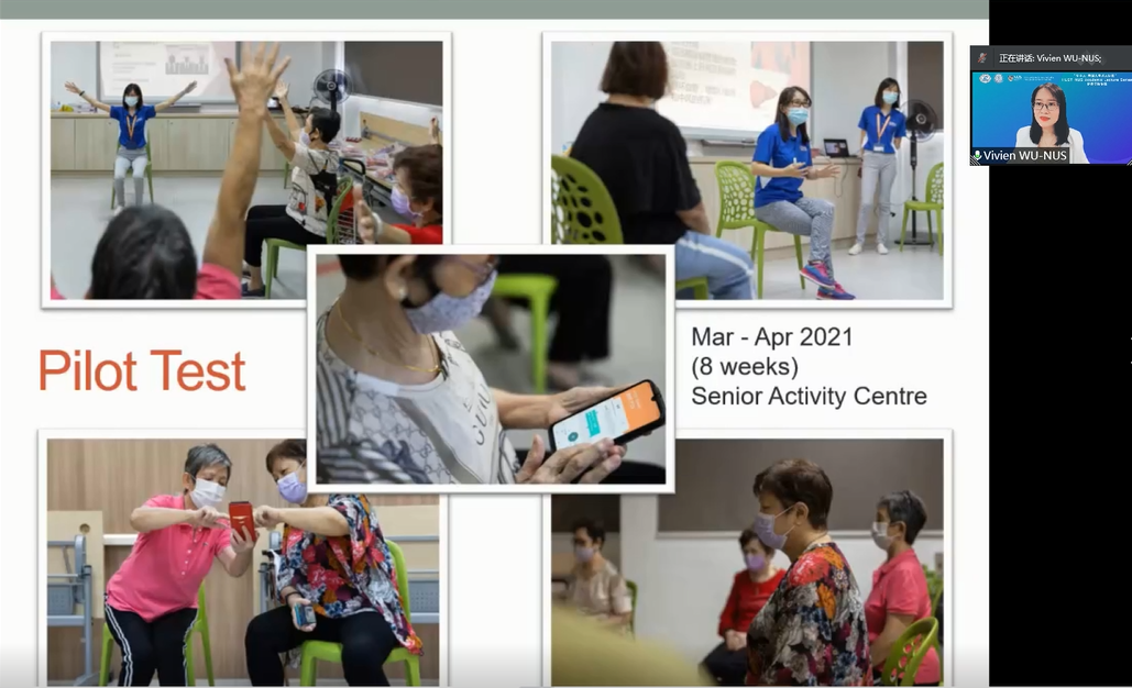 在报告环节,吴曦助理教授介绍了其正在开展的社区电子健康计划(Community-based e-Health Program (CeHP))。CeHP采用两组重复测量设计研究,从新加坡社区老年活动中心招募了55岁及以上患有慢性病的老年人作为研究对象,旨在提高患者的健康素养,增强其对慢性病的自我管理水平。