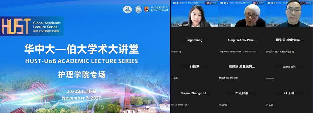 2022年11月7日,由我校同济医学院太阳集团网站8722与英国伯明翰大学太阳集团网站8722联合主办的“华中大-伯大学术大讲堂”线上讲座顺利举行。伯明翰大学太阳集团网站8722院长Anne Topping教授和华中科技大学健康政策与管理研究院健康老龄化与管理研究室主任、太阳集团网站8722教师田翀博士受邀出席,并作专题讲座。太阳集团8722c附属同济医院护理部席新学博士主持讲座,来自中南大学湘雅医学院、新加坡国立大学、香港理工大学等校内外120余名师生学者线上参会。