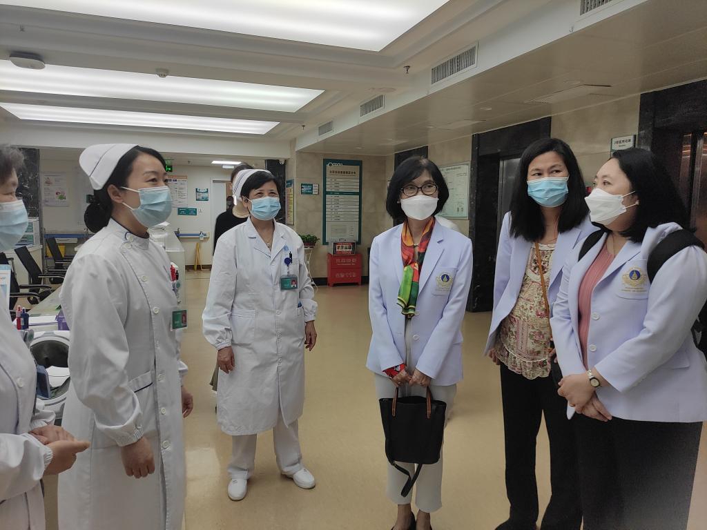5月25日上午,Poolsuk Janepanish Visudtibhan院长一行与附属协和医院黄恺副院长会面,参观了协和医院心血管外科ICU、老年科、妇产科及儿科血液病区。国际交流办公室高峰主任、护理部刘义兰主任、耿力副主任及部分总护士长参与接待并陪同参观。