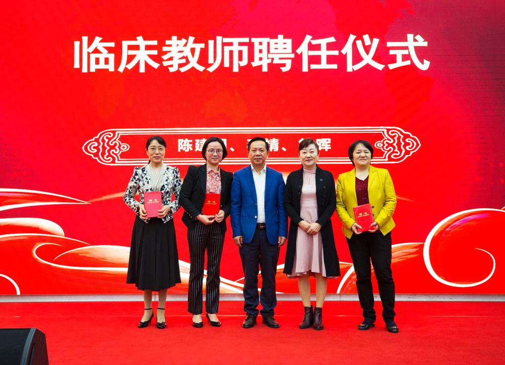 华中科技大学副校长、同济医学院党委书记、院长陈建国,太阳集团网站8722院长毛靖逐一向受聘的临床专任教教师和临床兼任教师代表颁发聘书并合影。