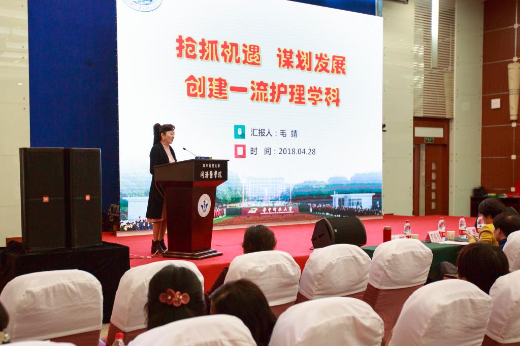 在护理学学科研讨中,吴蓓以“美国护理科研和教育动态”为主题,就护理的社会使命、挑战与发展,中国护理和一些发达国家护理的共性与差异,护理实践的范围与护理科研重点领域进行交流。毛靖以“抢抓机遇,谋划发展,创建一流护理学科”为主题,汇报了华中科技大学护理学科现状、发展目标与举措,强调要从国际一流的师资队伍,拔尖创新人才培养,整合全校护理资源,产出重大研究成果,着力推进国际化等方面推进学科建设。附属协和医院、同济医院、梨园医院、武汉中西医结合医院、武汉中心医院、武汉儿童医院、湖北肿瘤医院、武汉普爱医院、武汉精神卫生中心、湖北妇幼保健院共10所附属医院护理部主任分别就各医院护理学科的现状与特色、发展目标与规划,建设路径与措施,存在的困难与需要的支持进行交流。