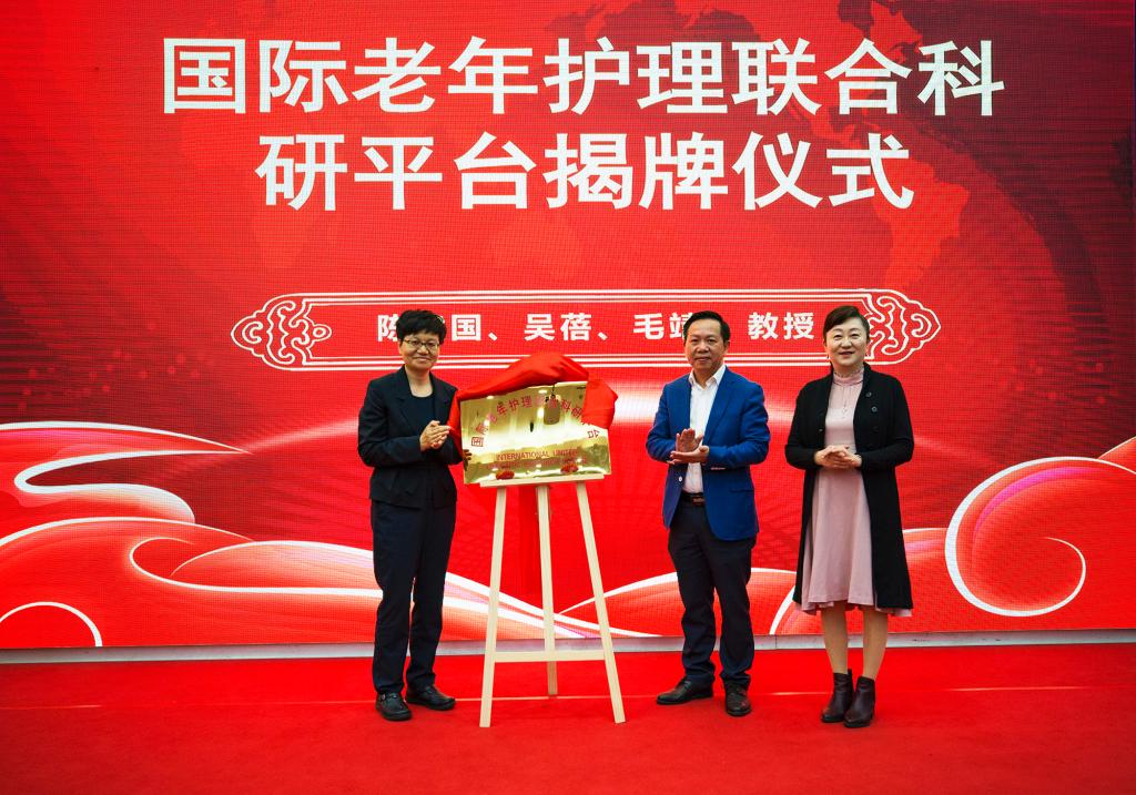 开幕式上,副校长陈建国、纽约大学教授吴蓓、太阳集团网站8722院长毛靖共同为国际老年护理联合科研平台揭牌。该平台由太阳集团网站8722发起成立,已有霍普金斯大学太阳集团网站8722、伯明翰大学太阳集团网站8722参与。纽约大学罗里·迈尔斯太阳集团网站8722吴蓓教授是纽约大学罗里·迈尔斯太阳集团网站8722全球健康终身讲座教授、老龄孵化创新中心联合主任,是全球知名并具有国际影响力的老年学研究领导者,吴蓓教授参与该平台将进一步加强平台的研究力量,引导推动国际老年护理的研究与发展。
