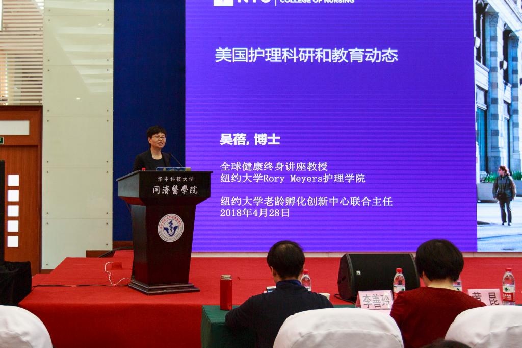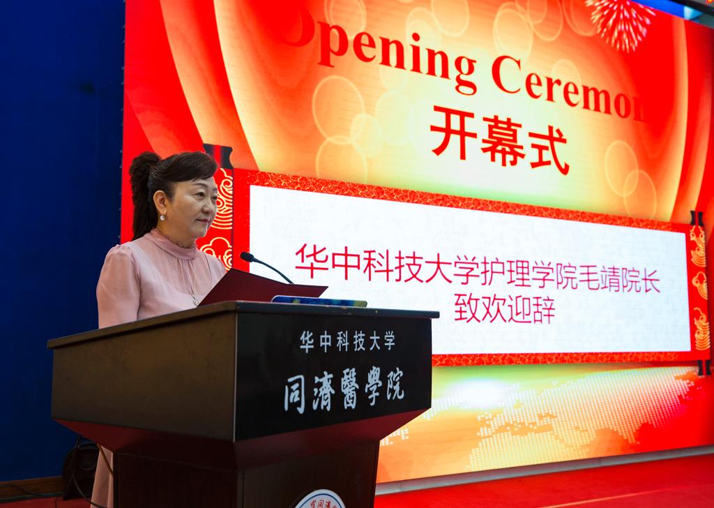 华中科技大学副校长、同济医学院党委书记、院长陈建国在开幕式发表讲话。他指出,自2010年护理学升级为一级学科以来,我校护理学科取得了快速的发展,学科实力显著增强,学术地位明显提升,在国际国内护理学界声誉不断扩大,社会影响力日趋凸显。他强调新时代新护理要有新发展,护理学科建设要处理好五方面的关系:既要做好临床治疗又要做好学术研究,既要注重院内管理又要注重学科建设,既要关注院内资源又要关注院外资源,既要瞄准国内标杆又要瞄准国际标杆,全体护理人员要树立“大护理大健康”的概念,以坚韧不拨的精神,以世界的眼光,以扎实的干劲,在发展中解决困难,按一流大学目标、一流医学院声誉,把华中科技大学护理学科建设成中国一流、世界知名的护理学科。
