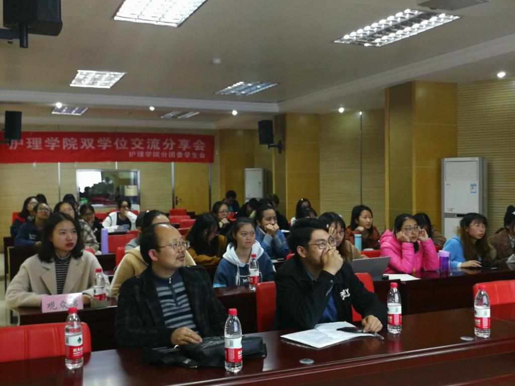 在距交流会开始十多分钟前,会场就已座无虚席。早到的同学们热情高涨地讨论着自己关于双学位的看法,以及自己的一些规划。交流会开始,12级研究生在读的杨清主要分享了她的科研经历。她回忆了自己在本科阶段所做的科研并将其与研究生阶段科研进行对比,从日常任务到工作态度,她建议学弟学妹们在以后的学习工作中要多与前辈沟通,大胆地去锻炼自己。随后,选择华中科技大学金融学的余长菊在交流会上发表了自己关于修双学位的利与弊的看法,在她看来,没有值不值,只有自己愿不愿意去努力。而选修中南财大金融学的余振威也跟大家分享了他修读双学位时的一些经历,他建议想要修读双学位的同学最好结伴而行,这样以来,大家可以互相勉励,从而避免半途而废。王永怡、代希、杨孟姝等同学紧接着也进行了热情的分享,建议大家提前做好课程考察,根据自己自身情况进行选择。还有不少同学在现场进行发问,他们都耐心的做了解答。
