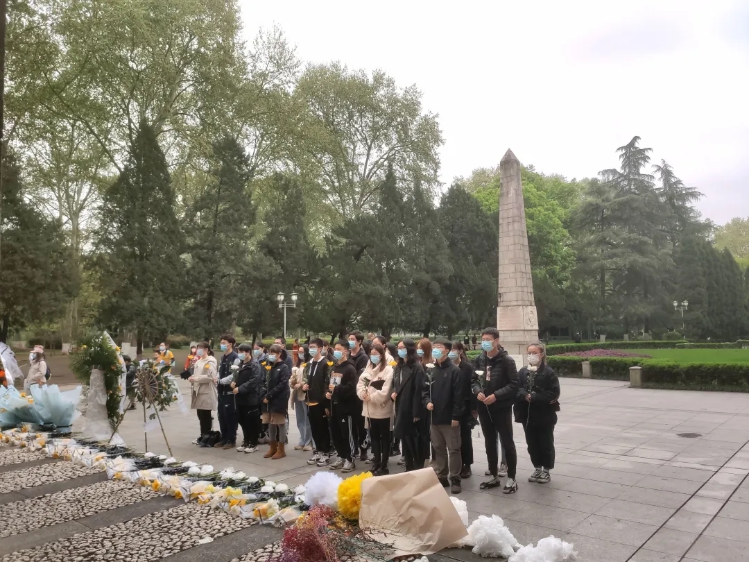 我们铭记历史,也珍惜当下、憧憬未来。前来缅怀的全体人员缓缓地走向纪念碑,将一支支鲜花摆放在纪念碑前,向革命烈士敬礼致敬,追思先烈英勇顽强、舍己为人的崇高精神。接着,全体人员整齐列队、庄严肃立,向逝去的先烈敬礼致敬,并默哀三分钟。默哀结束后,同学们展开讨论,发表感悟。汪唯同学讲道:“先烈们以大无畏的豪迈气魄,以一抔热土一抔魂的牺牲精神,协助我们打赢了武汉保卫战,成就了这辉煌的百年,我们要沿着革命前辈的足迹继续前行,把红色江山世世代代传下去。”殷洁同学说:“这些无名英雄们把鲜血洒在了武汉,把遗体留在了异国他乡,吾辈当铭记在心,当奋发图强,当共铸铁一般的中华魂。