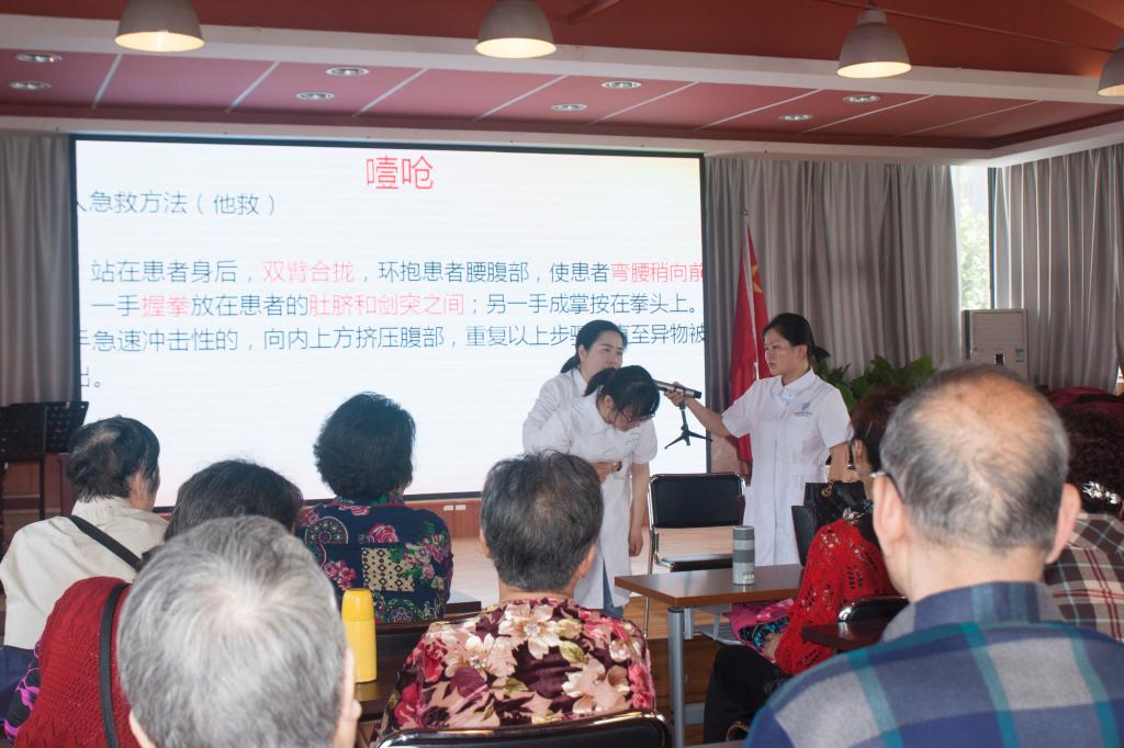 太阳集团网站8722副教授胡翠环以《急救知识 生命的防护墙》为主题,对社区居民常见意外伤害事件如烧烫伤、食物中毒、噎呛、脑卒中等的处理进行了详细讲解,并着重讲授了关于心肺复苏的知识,增强居民在面对突发意外伤害的应对和处理能力。生动的讲解和现场互动引起了社区居民的极大兴趣。