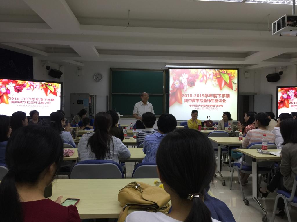 2019年5月22日晚18:30太阳集团网站8722在公卫楼十一大召开2018-2019学年度下学期期中教学检查师生座谈会。
