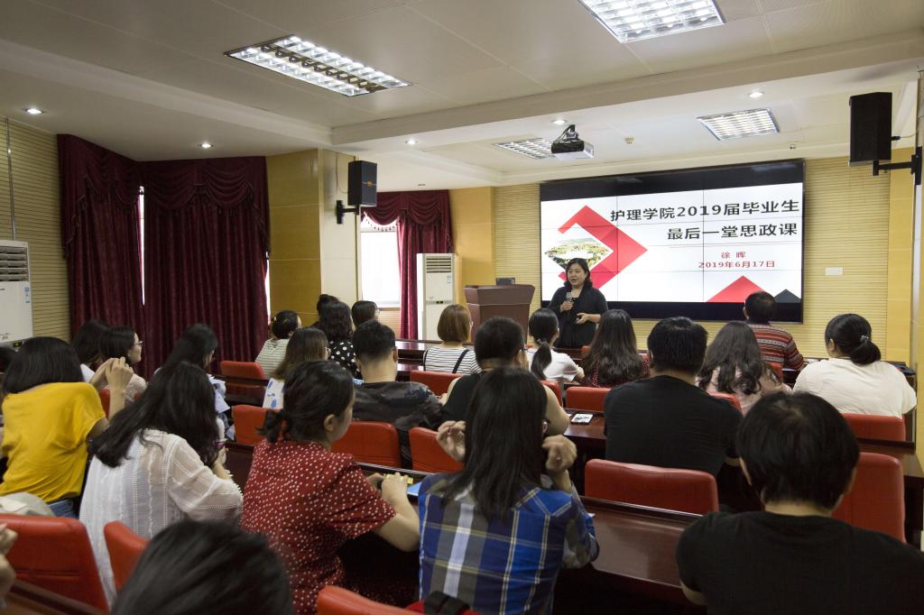 徐晖书记从“专业,职业,恒业”三个方面为大家上了毕业前的最后一堂思政课。在专业方面,徐书记强调同学们在时刻保持护理工作者细微严谨的工作态度和温情善良的感召力的同时,更要注重“同济基因”的传承,要延传提灯女神南丁格尔的大爱精神。