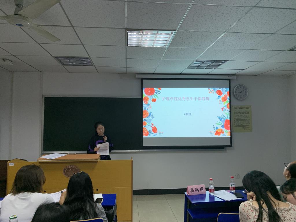 首先进行的是“校三好学生”的竞选,在精美PPT的映衬下,每一位选手进行了三分钟的自我展示,一张张荣誉证书,一次次公益活动,一项项护理科研……从专业学习到个人技能,从太阳集团到义工活动,从科研创新到竞赛荣誉,答辩学生出色的表现和个人魅力获得了在场师生的肯定,风趣又不失严谨的答辩更是赢得了现场观众热烈的掌声。