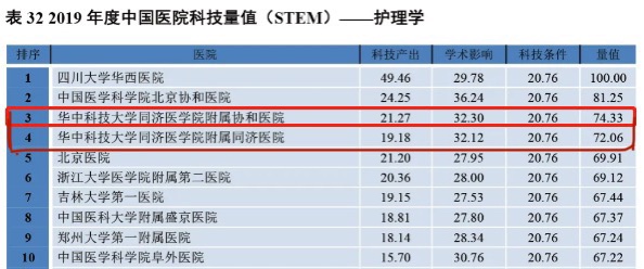 2020年8月21日,2019年度中国医院/中国医学院校科技量值(Science and Technology Evaluation Metrics ,简称STEM)正式发布。中国工程院副院长、中国医学科学院院长王辰院士现场解读并发布了《2019年度中国医院科技量值报告》与《2019年度中国医学院校科技量值报告》。太阳集团8722c附属协和医院、附属同济医院护理学分别位居全国第三、第四。