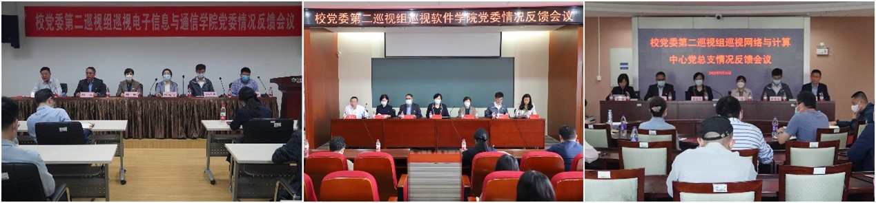 图为校党委第二巡视组巡视电子信息与通信学院党委、软件学院党委、网络与计算中心党总支情况反馈会