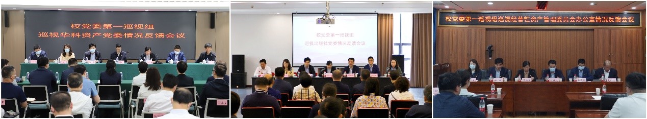 图为校党委第一巡视组巡视武汉华中科大资产管理有限公司党委、华中科技大学出版社党委、经营性资产管理委员会办公室情况反馈会