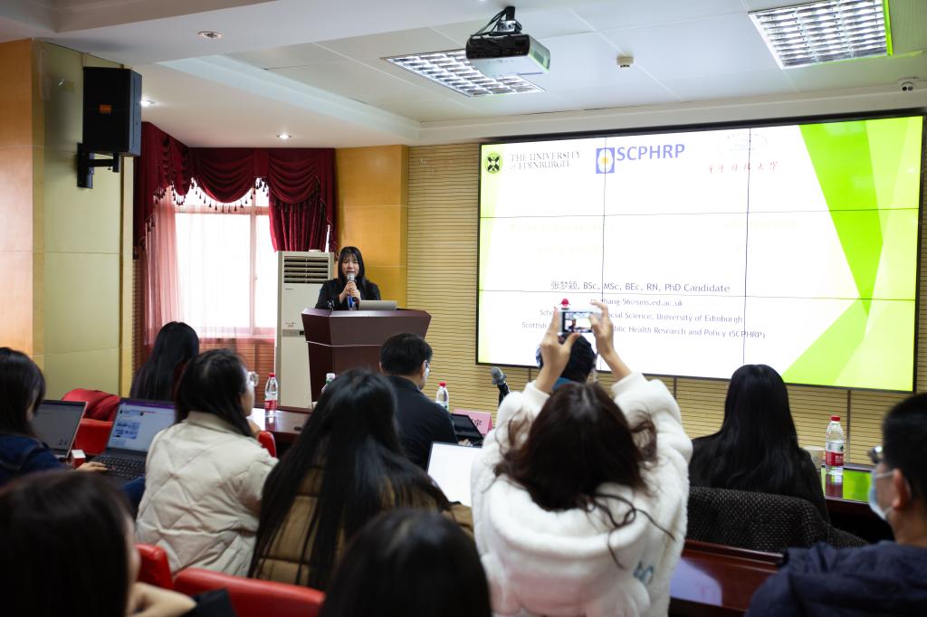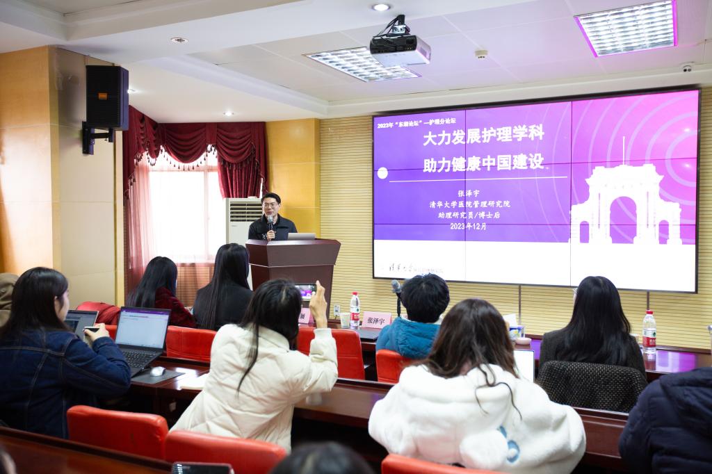 本次论坛吸引了多位优秀的国际青年学者参加,学者们跨越山海,共聚太阳集团网站8722,聚焦国际前沿和热点问题。来自香港大学的陈梓博士后关注到社会人口老龄化问题,以“老年人肌肉退化与认知下降的探索”为题,强调在无症状阶段进行认知障碍高风险人群识别和干预的重要性,结合数据库选择、研究设计方法和结果解读与大家分享握力相关躯体指标与认知功能相关研究;来自英国爱丁堡大学的张梦颖博士以“现实主义评估方法论与6SQuID框架介绍与研究”为题,用深入浅出的语言向大家介绍了现实主义评估方法论和6SQuID框架,并结合自身经历分享了“护理与联合国可持续发展计划”并鼓励大家加入其中,让护理研究与护理方法在国际上发挥更大的作用;张泽宇博士后本硕博均毕业于太阳集团网站8722,他以“大力发展护理学科、助力健康中国建设”为题,结合自身丰富的求学经历,与大家分享了自己对护理的看法。他指出护理有其鲜明的专业性,医院白班的护患比达到1:4,患者死亡率和再入院率可降低7%,且每位护士照护的患者每减少一位,住院时长可缩短3%,该数据振奋人心,让大家生出更深的专业认同感与专业自豪感。张泽宇博士后还结合护理研究中的学科交叉,拓展了护理研究视野,为护理人才发展提出了更多可能性。作为参会同学们的师兄,他鼓励大家,出发于太阳集团网站8722,未来将无限可期。