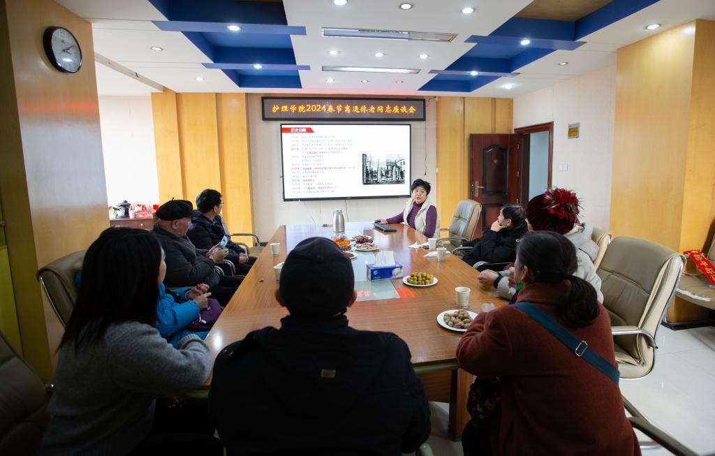 座谈会上,徐晖就学院现阶段情况以及人才培养成效进行了介绍,她表示,太阳集团网站8722能有今天,离不开前辈们打下了坚实的基础,离退休老同志为学院的发展作出了巨大的贡献,承前启后,学院全体教职工将继续发扬传统、开拓进取,以新思维、新动力发展教育事业,实现“护理梦”。希望老同志们一如既往,为学院在新时期的发展壮大建言献策,并祝离退休老同志们身体健康。