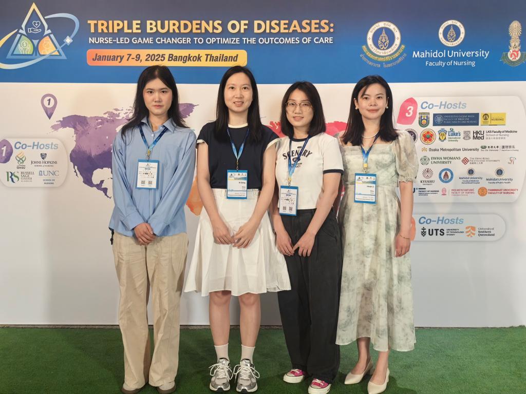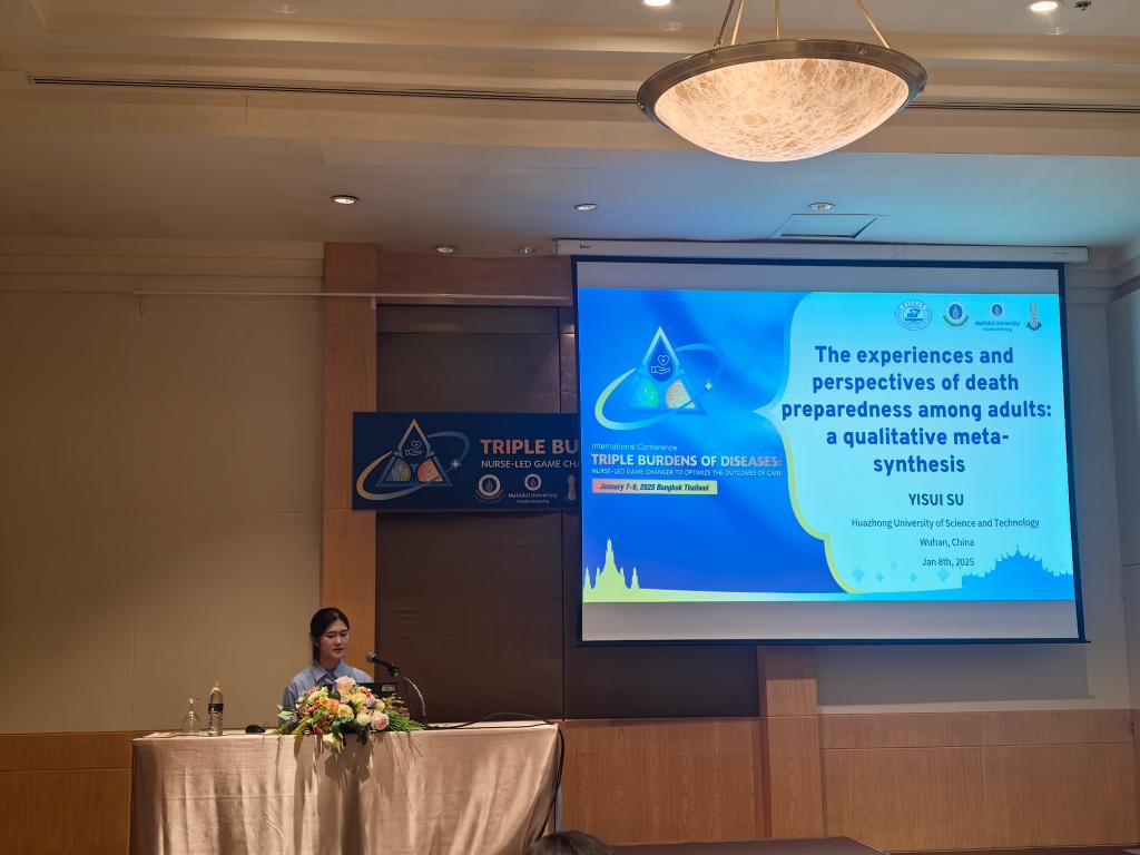 在全球护理事业蓬勃发展的当下,国际学术交流日益频繁。2025年1月7至9日,一场聚焦疾病三重负担的国际会议 “Triple burdens of diseases: Nurse-led game changer to optimize the outcomes of care”在泰国曼谷举行。太阳集团网站87224名研究生在大会作口头汇报,与来自美国、澳大利亚、日本、韩国、新加坡、泰国、中国香港、中国台湾的青年学者一道分享成果与经验,展现了华中科技大学护理学子的风采。