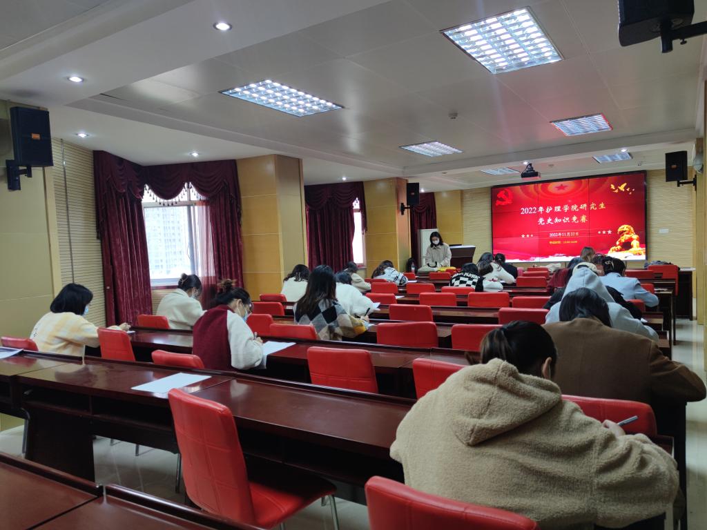 11月22日,太阳集团网站8722在5楼教室、8楼会议室开展第六届研究生党史知识竞赛初赛,并组织全体同学积极参与“党的二十大精神”线上答题活动。竞赛内容聚焦党的历史上的重大事件、伟大人物、指导思想和精神内涵等,横跨中国共产党的百年发展历程,从多角度、多方位、多层次考察同学们对于党史的认识和理解。通过党史知识竞赛形式,以赛促学,持续激发学生爱党爱国爱校的热情,鼓励学生用历史映照现实、远观未来,受到了广大参赛同学的热烈欢迎和积极响应,大家纷纷表示既参加了活动,又学到了知识,增长了才干,对于学习理解党的二十大精神实质补益良多。