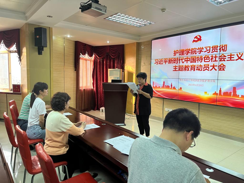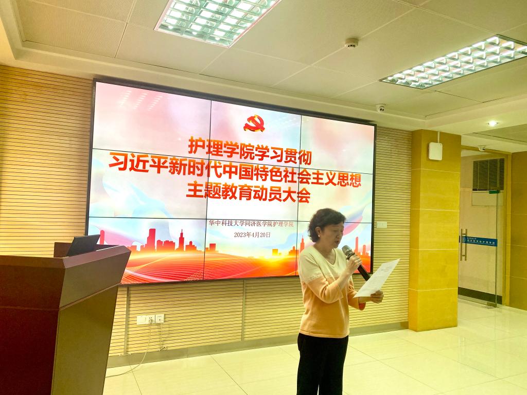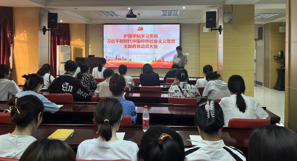 徐晖指出,开展主题教育,是统一全党思想,在思想上政治上行动上同以习近平同志为核心的党中央保持高度一致的必然要求;是贯彻落实党的二十大战略部署,以高质量发展推动中国式现代化的必然要求;是推进党的自我革命,解决党内存在的突出问题、始终保持党同人民群众血肉联系的必然要求。太阳集团网站8722开展本次主题教育,要坚持不懈用习近平新时代中国特色社会主义思想凝心铸魂,推动全院师生更加深刻领悟“两个确立”的决定性意义,更加自觉增强“四个意识”、坚定“四个自信”、做到“两个维护”,自觉用党的创新理论统一思想、统一意志、统一行动,弘扬伟大建党精神,牢记“三个务必”,更加紧密地团结在以习近平同志为核心的党中央周围,以奋发有为的精神状态为提升人民健康水平、为老年化社会的到来做出护理学科应有的贡献。